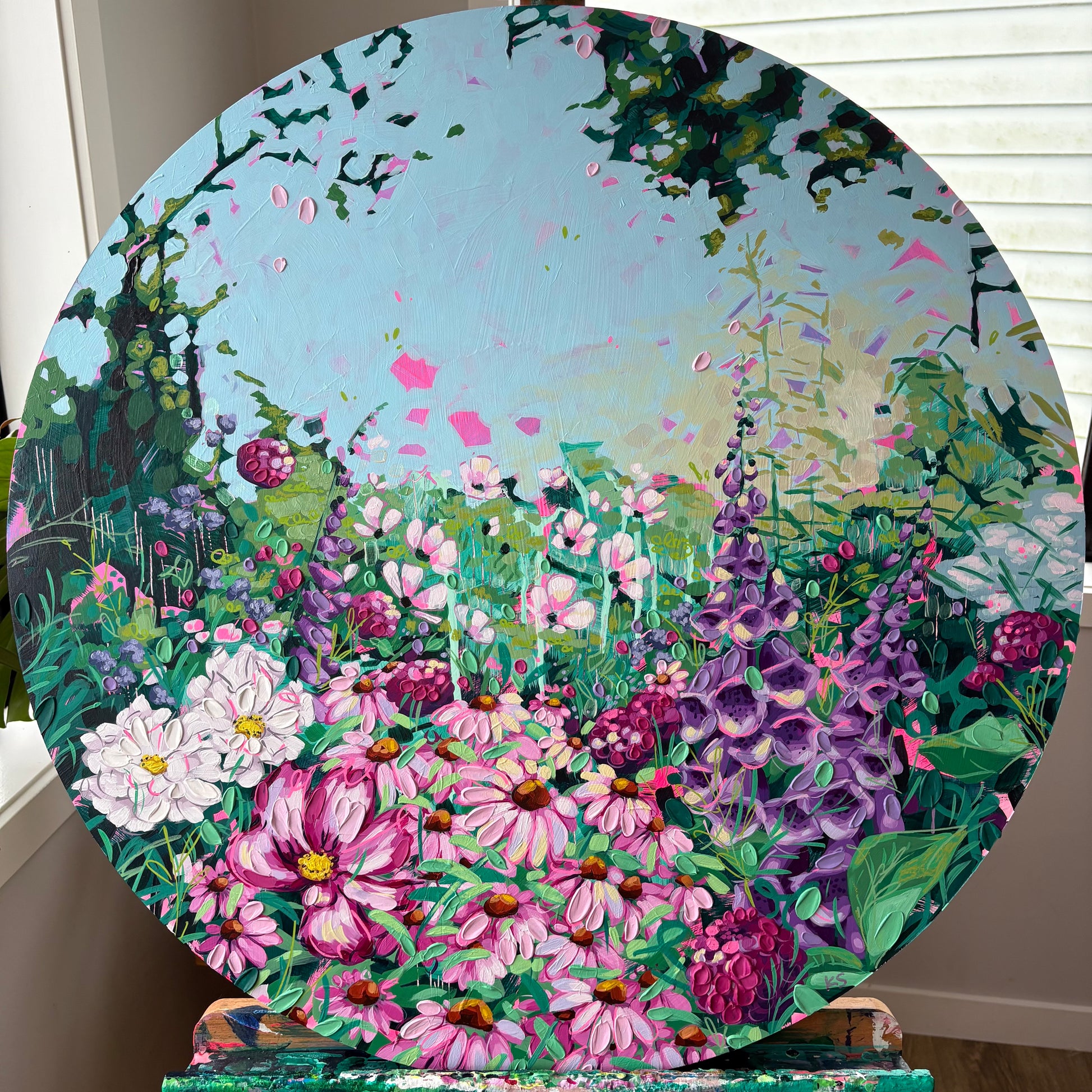 Mixed media artwork including artist grade acrylic washes, texture paste, acrylic pens, oil pastel and oil paint.